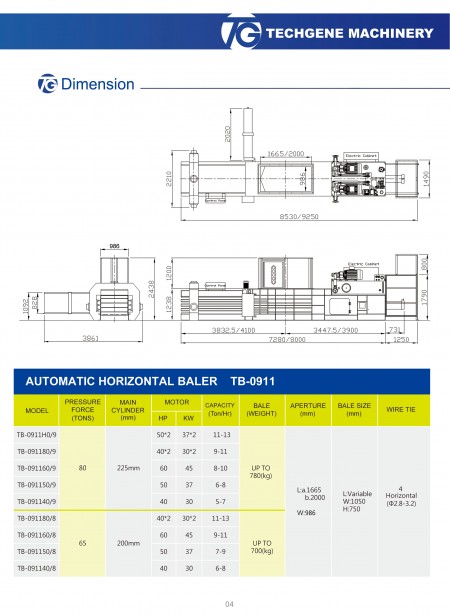 Techgene Machinery ऑटोमैटिक हॉरिजॉन्टल बेलर मशीन TB-0911 सीरीज ई-कैटलॉग डाउनलोड