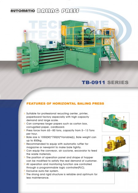 Prensa de enfardamento horizontal automática, a série TB-0911 é adequada para demanda de média a alta capacidade.