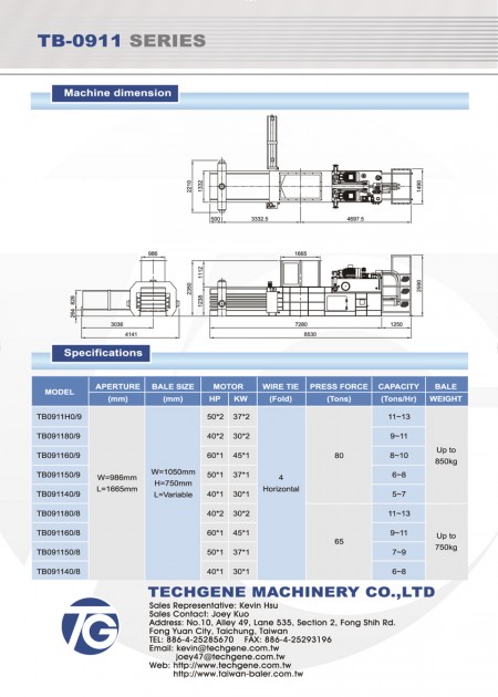 A prensa enfardadeira horizontal TB-091160 pode ser personalizada de acordo com diferentes demandas, a posição do painel de operação e a forma da tremonha podem ser modificadas para satisfazer a demanda real dos clientes e podem fazer o tamanho do fardo ser de 1050mm de largura * 750mm de altura * (Comprimento Variável) de acordo com a exigência do cliente.
